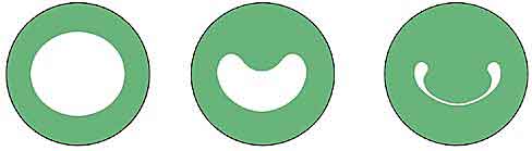 Так выглядит зрачок у дельфина при разных уровнях освещенности. Слева - при слабой освещенности: зрачок расширен и практически круглый. В центре - при умеренной освещенности: сверху выдвигается выступ (оперкулюм), сужающий зрачок в виде серповидной щели. Справа - при сильной освещенности: серповидная щель сомкнулась, но остались два небольших отверстия на ее концах.Конечно, сильное сужение зрачка, при котором он распадается на два отверстия, происходит только при достаточно ярком освещении; при слабом освещении зрачок расширяется и пропускает весь попадающий на глаз свет. Но это не беда, потому что именно над водой освещенность высока, и зрачок приобретает вид двух отверстий, что и нужно для хорошего надводного зрения. Под водой освещенность много меньше, там зрачок расширяется, и свет попадает в глаз через всю роговицу - и через ее уплощенные края, и через центральную выпуклую часть. Но это не мешает дельфину, ведь под водой нет преломления света на роговице, так что совершенно неважно, какой она формы.Итак, удивительная способность дельфина одинаково хорошо видеть и в воде, и в воздухе обеспечивается изящной комбинацией нескольких необычных особенностей строения глаза: наличием в сетчатке двух зон наилучшего видения, шаровидной формой хрусталика (благодаря чему каждая из этих зон “смотрит” сквозь лежащий напротив нее слабо искривленный край роговицы) и наличием двух зрачковых отверстий, пропускающих только тот свет, который проходит через мало искривленную роговицу. Все это вместе и создает уникальную конструкцию глаза дельфина.