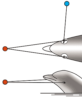 Института проблем экологии и эволюции им.А.Н.Северцова РАН.Дельфин в отличие от многих других животных, зрение которых ничуть не хуже, а у некоторых и лучше, обладает уникальной способностью - он хорошо видит и в воздухе, и в воде. Хотя вся его жизнь проходит в воде, он вынужден регулярно всплывать для дыхания. И в это время у него появляется прекрасная дополнительная возможность ориентироваться: прозрачность воздуха неизмеримо выше прозрачности воды, поэтому в воздухе можно видеть то, что расположено на расстоянии километров, тогда как в воде - лишь в нескольких метрах. Действительно, согласно многим наблюдениям, дельфин активно пользуется зрением, а с помощью специальных измерений удалось выяснить, что и под водой, и в воздухе у него вполне приличная острота зрения (8-12’) [1, 2].