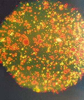 До наших дней дошло совсем немного “цветных” дагерротипов, однако они также нуждаются в реставрации. Конечно же, методы диагностики и процедура восстановления не могут быть такими, как для черно-белых дагерротипов. Пока нам удалось осуществить первый этап — выяснить химическую природу некоторых пигментов с помощью спектрального метода комбинационного рассеяния (КР). Он так же, как ИК-спектроскопия, не требует отбора аналитической пробы и, следовательно, не повреждает поверхность образца. А кроме того, обладает высокой чувствительностью и в сочетании с микроскопом позволяет получать спектры очень небольших участков поверхности.