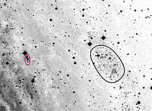 В пользу гипотезы о том, что мы имеем дело не с комплексом внутри NGC 6946, а с карликовой компактной галактикой, казалось бы, говорит поразительное сходство объекта Ходжа с галактикой того же типа NGC 1705, которая также содержит сверхскопление и много более слабых скоплений и имеет примерно такие же размеры (рис.7). Возможно, наличие сверхскопления в нормальной галактике NGC 6946 объясняется тем, что на самом деле оно находится в компактной голубой галактике переднего фона. Как уже говорилось, подобные скопления в данных галактиках встречаются очень часто, и причина этого составляет одну из важнейших нерешенных проблем космогонии и космологии.