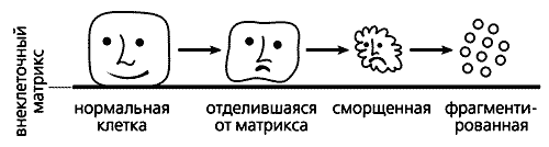 Схема, иллюстрирующая морфологические изменения клетки при апоптозе.