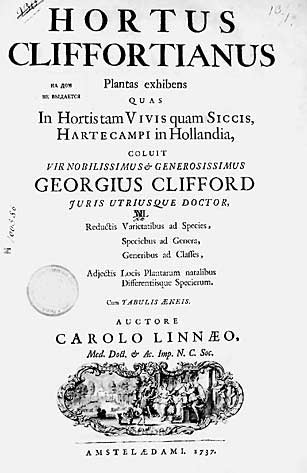 Титульный лист сочинения К.Линнея “Hortus cliffortianus”