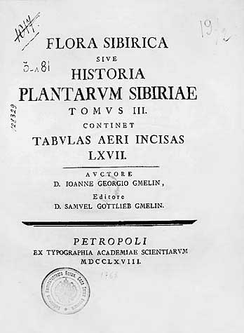 Титульный лист сочинения И.Г.Гмелина “Flora Sibirica”