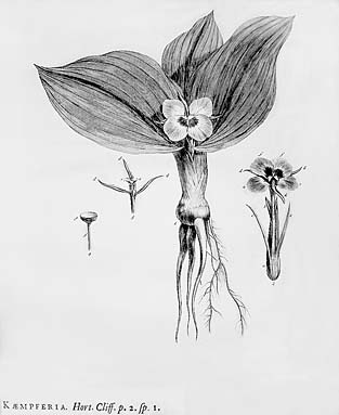 Хотелось бы утверждать, что знакомство с Линнеем способствовало коллекционерскому честолюбию Энса. В самом деле, в его гербарии имеются растения, описанные Линнеем, из сада Георга Клиффорта, директора Ост-Индской компании и владельца богатейшего сада в Гартекампе. Это Bosia L. из семейства амарантовых (Amaranthaceae) - род, названный Линнеем в честь Каспара Бозе, лейпцигского сенатора, покровителя ботаники, - и Kaempferia L. из семейства имбирных (Zingibiraceae) - посвященный врачу, естествоиспытателю и дипломату, знатоку растений Японии Энгельберту Кемпферу (1651-1716). Сад Клиффорта обладал богатейшим собранием экзотических растений, вывезенных из голландских колоний и выращиваемых в специальных оранжереях. Щедрость Клиффорта превратила изданный в Амстердаме каталог в шедевр гравировального искусства. Линней же отблагодарил мецената тем, что назвал в его честь новый род Сliffortia L. (Rosaceae).