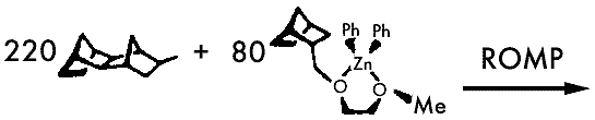 Органическими компонентами для синтеза блоксополимера могут служить норборненовые мономеры, в один из которых внедряют ионы золота, серебра, кадмия или цинка [16]. Норборнены, будучи циклическими соединениями с двойной связью, отличаются высокой реакционной способностью. Под действием катализатора они подвергаются перегруппировке: 5-членный цикл молекулы раскрывается и образуется линейный полимер (такую реакцию называют метатезисом с раскрытием цикла).