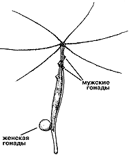 Гидра устроена предельно просто: маленький двуслойный мешочек с короной щупалец на макушке. Однако, как ни удивительно, этот “мешочек” способен к довольно активной и разнообразной деятельности: полип сокращает и вытягивает тело, демонстрирует или прячет ножку, извивает, удлиняет или укорачивает щупальца, формирует на своем тельце молодых маленьких полипчиков или гонады — половые железы. Известно, что момент возникновения почек на теле гидры и то, во что эта почка впоследствии превратится (в гонаду или нового полипчика) в значительной степени зависит от температуры воды [7]. Уже возникшая почка бокового полипчика при повышении температуры воды на несколько градусов может трансформироваться в гонаду. Hекоторые виды гидр раздельнополы: на одних полипах формируются мужские, а на других — женские гонады, в к оторых развиваются яйца. Hо есть среди гидр и гермафродиты. У таких полипов мужские гонады развиваются в верхней части, а под ними формируются гонады с яйцами. К осени созревшие яйца отделяются от материнского организма и, покрывшись шероховатой оболочкой (эмбриотекой), превращаются в эдаких “миниежиков”, зимующих на дне водоема. По весне шкурка “ежика” лопается и сквозь нее появляется юная гидра, которая за лето, набрав силы, вырастает и, “напочковав” других полипов бесполым (вегетативным) путем, как веточки у растения, вновь создает гонады и завершает свой индивидуальный жизненный цикл появлением новых яиц. С наступлением холодов в водоеме сами полипы погибают, а сохранение популяции гидр берут на себя их зимующие яйца в эмбриотеках. |