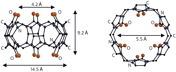 “Бочка” кукурбитурила - вид сбоку (слева) и сверху.