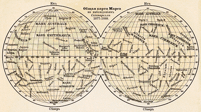 Самым знаменитым по праву считают противостояние, случившееся в начале сентября 1877 г. Именно тогда американский астроном Асаф Холл (1829-1907) открыл оба спутника Марса - Фобос и Деймос. И тогда же итальянский астроном Джованни Скиапарелли (1835-1910) увидел знаменитые марсианские каналы (в 1879 г. он подтвердил это открытие). Называя темные пятна на Марсе, как они именовались и ранее, морями и заливами, а соединяющие их линии - каналами (canali), он просто следовал астрономической традиции. Но позже некоторые энтузиасты восприняли эти названия всерьез и даже полагали, что каналы - это искусственные сооружения, созданные для орошения полей.