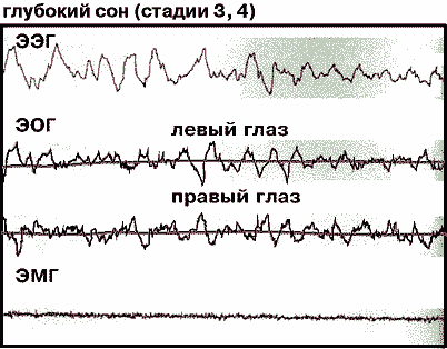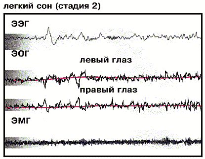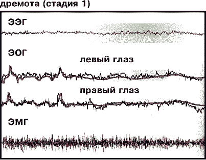 Появление электроэнцефалографии во второй половине XX в. позволило, наконец, строго разграничить фазы сна и тем самым подойти к выяснению их физиологической роли. Поскольку идентификацию сна, его фаз и стадий физиологи проводят на основе общепринятых, так называемых полиграфических, критериев, полиграмм - электроэнцефалограммы (ЭЭГ), электромиограммы (ЭМГ), электроокулограммы (ЭОГ), то естественно определять сущность сна по этим показателям. Однако и здесь мы сталкиваемся с теми же трудностями: нет ни одного признака, достаточного для определения сна. Отдельные характеристики медленного и парадоксального сна на ЭЭГ иногда встречаются и в других состояниях. Так, при различных формах патологии и под влиянием фармакологических препаратов на ЭЭГ наблюдаются те или иные изменения, “имитирующие” определенные стадии сна.