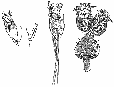 Нетрудно заметить, что у простейших неподвижный образ жизни не связан, как у многоклеточных, с утратой каких-либо структур. Наоборот, разнообразие условий в пограничном слое вызвало развитие дополнительных органелл (в особенности прикрепительных). Более того, произошло усиление функции органелл питания, что привело к увеличению размеров клетки. Несомненно, все эти изменения имели прогрессивный характер [8]. * * *