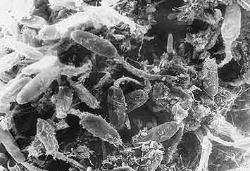На любом погруженном в воду объекте, как правило, формируются сообщества прикрепленных одноклеточных организмов, относящихся к царству простейших, или протистов (Protista), — многочисленной, но все еще недостаточно изученной группы беспозвоночных животных. Такие сообщества, обитающие на твердых субстратах в пресных водоемах, называют перифитоном, в морях — биообрастаниями, на поверхности водорослей и высших водных растений — эпифитоном, на водных животных — комменсальными сообществами, или эпибионтами, и т.д. По нашим оценкам, из примерно 100 тыс. известных видов протистов не менее 10% ведут сидячий образ жизни. Прикрепленные формы есть среди различных групп простейших: солнечников, фораминифер, радиолярий, гетеротрофных и автотрофных жгутиконосцев, инфузорий. И это неудивительно, ведь сидячий образ жизни дает организмам определенные преимущества — на обтекаемой водой поверхности они всегда обеспечены пищей.
