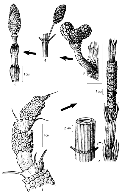 Спороношения. Известно, что весьма важным таксономическим признаком служит строение репродуктивных органов (у членистостебельных их называют спороношениями).