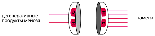 Хеникофф с коллегами [2] предложили модель, описывающую координированную эволюцию ДНК и белков и приводящую к появлению оптимально функционирующих центромер на примере деления женских половых клеток. Как известно, в процессе мейоза одна родительская клетка посредством следующих друг за другом двух делений дает начало четырем дочерним клеткам. Впоследствии только одна из них превращается в зрелую женскую половую клетку (гамету), передающую генетическую информацию следующему поколению, тогда как три других клетки отмирают. Согласно этой модели, в процессе эволюции вследствие мутаций и других механизмов в хромосомах могут возникать центромеры с более протяженными тяжами мономеров сателлитной ДНК или с первичной структурой нуклеотидов, более способствующей связыванию и координированной работе со специфическими формами гистонов CENH3 и СЕNР-С. При этом у одних организмов (арабидопсис, дрозофила) доказательства для положительного давления отбора получены для CENH3, тогда как для других видов (злаки, млекопитающие) для СЕNР-С (рис.4,а). В итоге такие центромеры с усовершенствованным кинетохором становятся “сильнее” и могут присоединять большее число микротрубочек веретена деления (рис.4,б). Если таких “сильных” центромер оказывается в гаметах больше, то происходит процесс мейотического драйва, который увеличивает количество таких центромер, и новый вариант фиксируется в популяции.