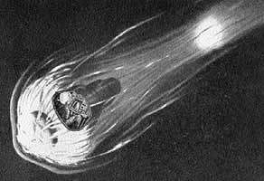 Возвращение из космоса. Рисунок сделан по описанию первого американского космонавта Джона Гленна, совершившего свой полет 20 февраля 1962 г. Видно, что вся кабина спускаемой капсулы объята факелом огня. Перед этим факелом светится головная ударная волна, искривленная прикрепленной к теплозащитной оболочке тормозной двигательной установкой.В 60-е годы физика лазеров заставила взглянуть на неравновесный газ по-новому. Один из основных итогов лазерной революции, помимо создания и внедрения в практику уникальных лазерных технологий, как раз и заключается в привлечении внимания к неравновесным средам, и в частности к неравновесным газам. Неравновесный газ - это не только активная среда газовых лазеров, первых из подобных устройств. Это еще и верхняя атмосфера, межзвездная среда, в том числе межзвездные облака, разрядная плазма и т.д. С точки зрения физики неравновесный молекулярный газ представляет собой такое состояние вещества, в котором запас внутренней энергии и ее распределение по степеням свободы молекул могут изменяться в определенных пределах, что и обеспечивает своеобразие его свойств. Изучение неравновесных газов позволило вскрыть новый пласт явлений. Отчетливое осознание этого факта произошло в 80-е годы, и работа в данной области пошла интенсивнее.