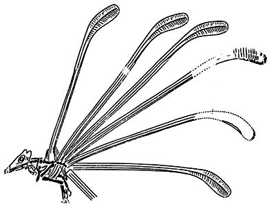 Палеонтологический институт РАН, МоскваВ начале 70-х годов палеоэнтомолог А.Г.Шаров (Палеонтологический институт АН СССР) обнаружил на территории Ферганской долины (Киргизстан), в отложениях позднего триаса урочища Мадыген, переднюю часть скелета с черепом миниатюрной ископаемой рептилии. На поверхности плитки из твердой глины, в которую заключены ее костные остатки, сохранились отчетливые отпечатки наружного покрова: в горловой области и по заднему краю плеча и предплечья хорошо заметны удлиненные и налегающие друг на друга чешуйки. Особенно замечательными оказались спинные чешуи рептилии — это длинные (до 10—12 см) и расширенные на конце пероподобные образования.