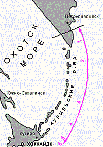 В северо-западной области Тихого океана перемещаются многочисленные циклоны и тайфуны. Одни из них, формируясь на далекой Атлантике, движутся от континента на восток, другие, образуясь в южных широтах Северного полушария, описывают замысловатые траектории над Китайским, Японским и Охотским морями, а затем смещаются на северо-восток, в Тихий океан. Таким образом, на дно акватории в районе Курильских о-вов действуют интенсивные вибрации от циклонов и тайфунов. С 1968 по 1982 г. мы наблюдали за штормами и проявившимися землетрясениями с K і 9 (М і 2.8) южнее Камчатского п-ова и землетрясениями с эпицентрами под океаном, граничащими с Северной Японией (рис. 2).