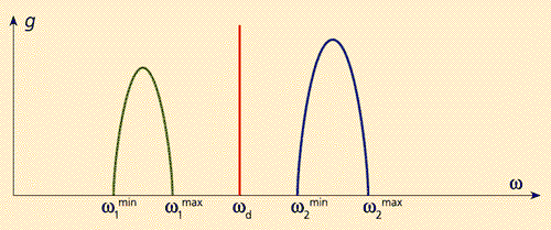 Область между w1max и w2min соответствует запрещенной зоне, а wd — дефекту кристалла