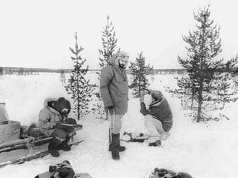 Стояли сильнейшие морозы. Я был одет в овчинный полушубок и оленьи сапоги, бедный Терье - в свою лучшую норвежскую одежду, включая пуховую куртку. Страдал он от мороза сильно. Всего лишь месяц назад он вышел из госпиталя после химиотерапии - ни прекрасных волос на голове, ни обычной для Терье бороды не было. Командир заставы раздобыл из запасника шерстяное белье, которое русские водолазы надевают под скафандр. Уже через полчаса Терье был вынужден расстегиваться. Русская одежда грела слишком жарко.