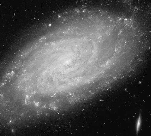 Рис.7. Типичная спиральная галактика, видимая «с полюса». Хорошо различимы главные структуры: ядро (в центре), балдж (сферическое сгущение старых маломассивных звезд, окружающих ядро) и спирали, состоящие из ярких сравнительно молодых звезд.