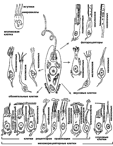Схема эволюционного разнообразия сенсорных клеток
