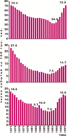 - общая заболеваемость всего населения столицы, включая беженцев, мигрантов и др., в 1998 г. составила 47,9 на 100 тыс.населения, т.е. за один год выросла на 6.9%;