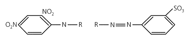 Слева — динитрофенил, введенный в белок (R) через x-аминогруппу лизина.
