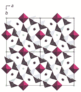 В основе атомной структуры кристаллов с высокой ионной проводимостью обычно лежит прочный и ажурный трехмерный каркас, пронизываемый каналами различной формы и сечения. В таких каналах статистически локализуются ионы, которые под действием электрического поля приходят в движение и транспортируют заряды. В свое время в Институте кристаллографии были синтезированы суперионные соединения с проводимостью по литию нового структурного типа [2] - кристаллы составов Li3Sc2(PO4)3 и Li3Fe2(PO4)3. В этих соединениях при разных температурах происходят два фазовых перехода, причем суперионной является высокотемпературная фаза. У выращенных монокристаллов была расшифрована атомная структура (рентгеновскими и нейтронографическими методами) и установлены проводящие свойства. Ионная проводимость по литию в них при комнатной температуре оказалась равной 1·10–5 Ом–1·см–1, а в суперионном состоянии - 1.8·10–2 Ом–1·см–1. Модель атомной структуры кристалла Li3Sc2(PO4)3 представлена на рис.1.