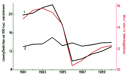 Во-первых, в России спиртные напитки были более токсичными. Второе обстоятельство скорее всего связано с насильственным характером антиалкогольной кампании. Медленные и небольшие колебания потребления спиртного в европейских странах приводили к его разнонаправленному изменению среди отдельных категорий населения и таким образом уменьшали общий результат. И наконец - генетические особенности российской популяции в отношении алькогольдегидрогеназы - фермента, участвующего в метаболизме поступающего в организм алкоголя.