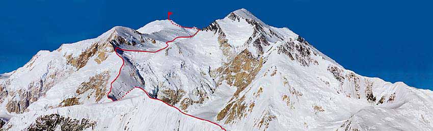 На топографической карте видно, что для того, чтобы по этому желобу одолеть подъем, на высоте 9000 футов (2743 м) нужно податься вправо - здесь ледяные плеши образуют крутую, но приемлемую дорогу. Именно так шли Кук и Баррилл, и приблизительно на этой высоте они принялись рубить ступени. Ваале, спрямляя маршрут восходителей, ошибся.