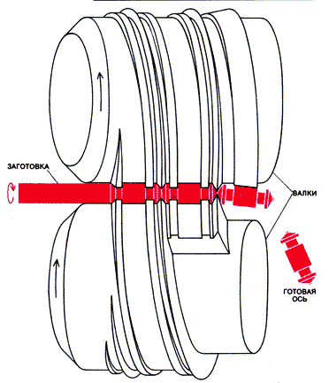В машиностроении широко применяются оси и валы с изменяющимся по их длине диаметром. Эти детали обычно изготовляли либо из заготовок, получаемых ковкой или штамповкой, либо из круглого проката снятием лишнего металла на токарных станках. Оба этих способа трудоемки и связаны с большими потерями металла в стружку. В первом случае - из-за больших припусков на последующую токарную обработку, а во втором - из-за того, что форма проката обычно далеко не соответствует форме осей и валов, имеющих цапфы, ступенчатые и конические участки. При изготовлении таких деталей токарной обработкой из обычного круглого проката около 35% металла уходит в стружку.