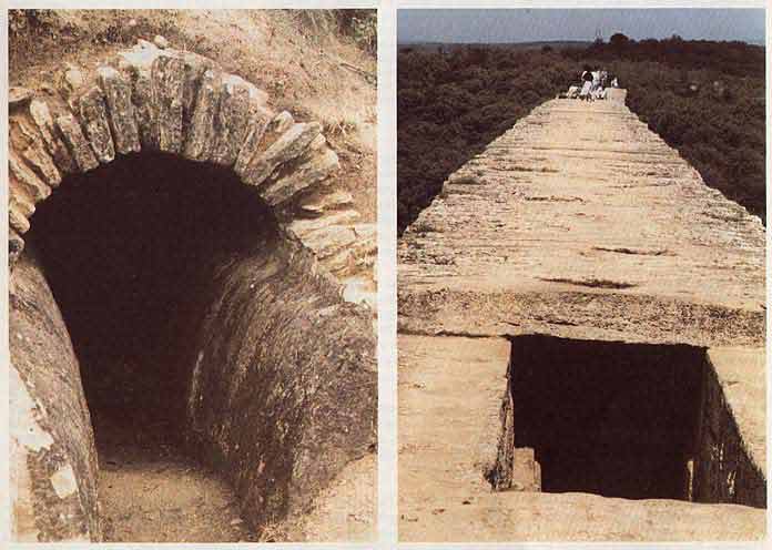 Сохранившийся участок водного канала (слева), покрытый толстым слоем кальциевых отложений. Канал в основном проходил под землей. Та его часть, где текла вода, имела квадратное сечение (со стороной 1,2 м). Общая высота канала, вместе со сводом, - 1,8 м, достаточная для того, чтобы рабочие, обслуживавшие канал, могли стоять в нем в полный рост. В местах выхода водовода на поверхность, например на Пон-дю-Гаре (справа), стены были выше 1,2 м, а вместо свода использовали каменные плиты.Нам также было известно, что поперечное сечение лотка обычно имело вид открытого квадрата со стороной 1,2 м, а общая высота канала, включая проход под аркой, составляла 1,8 м, вполне достаточно для того, чтобы люди, обслуживавшие сооружение, могли стоять там в полный рост. К месту работ они проникали через люки, расположенные на одинаковом расстоянии друг от друга вдоль всей трассы канала. Там, где акведук выходил на поверхность, например на мосту Пон-дю-Гар, канал имел прямоугольное сечение за счет более высоких стен, на которые были уложены каменные плиты. Эти плиты имели большую устойчивость к выветриванию, чем каменные своды.По экономическим соображениям, на которых я еще остановлюсь, часть канала выше Пон-дю-Гара имела средний уклон 0,67 м/км по сравнению с 0,187 м/км ниже этого места, где уклон колебался в пределах 0,07-0,30 м/км. На основе современных гидрологических оценок можно считать, что расход в канале воды из источников в окрестностях Уцеции составлял 210-450 л/с (среднее значение около 350 л/с).