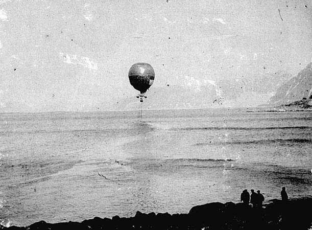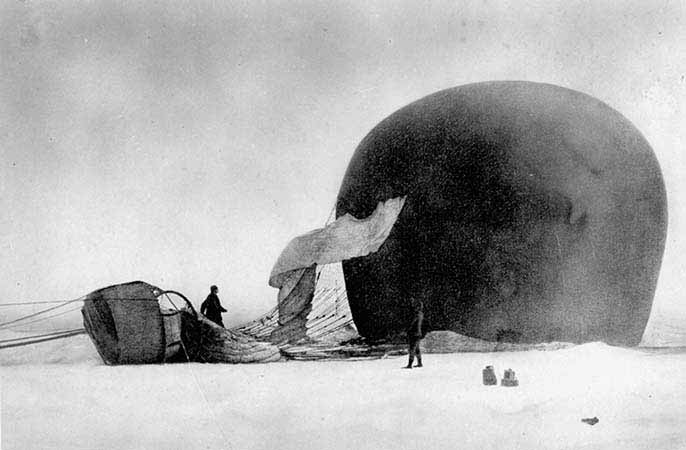 11 июля 1897 г. три шведа – Андрэ, Стриндберг и Френкель – поднялись на воздушном шаре с острова Дэйнс (Данскойа), находящегося в северо-западном районе Свальбарда. Их цель была достичь Северный полюс и продолжить оттуда путь к североамериканской или азиатской части Арктики. Во время экспедиции они планировали проводить научные наблюдения. Перелет на воздушном шаре экспедиции Андрэ, без сомнения, занял особое место в истории полярных исследований и в истории воздухоплавания.