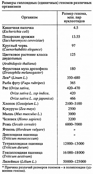 • эволюционной отдаленностью растений от животных, что серьезно осложняет использование для изучения геномов растений сведений, полученных при секвенировании генома человека и других животных;