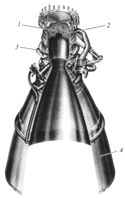 3, 4 - соответственно докритическая и закритическая часть камеры сгорания