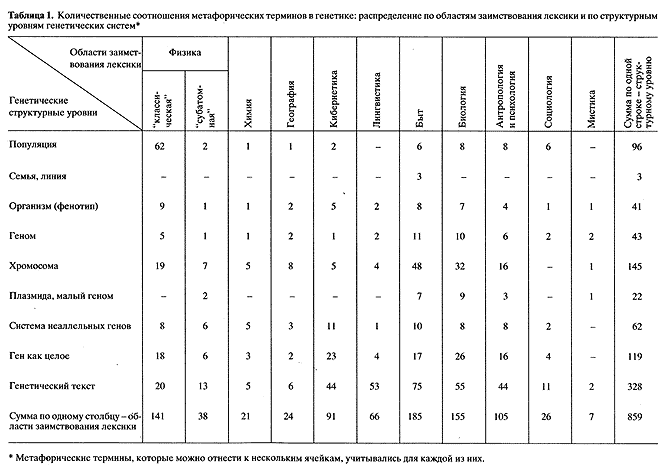 Некоторые авторы отмечают, что сейчас стремительно растет интерес к метафоре со стороны теории познания, логики, когнитивной психологии, языкознания, и начаты исследования метафорических терминов из физики элементарных частиц, астрономии, математики [4, с. 4, 127] и, наконец, из биологии XX в. в целом [5]. До сих пор, однако, исследование метафор было ограничено рамками гуманитарного дискурса: не были еще разработаны ни точные методы анализа, ни структурно-функциональные модели. Хотелось бы предложить новые подходы на материале генетики.