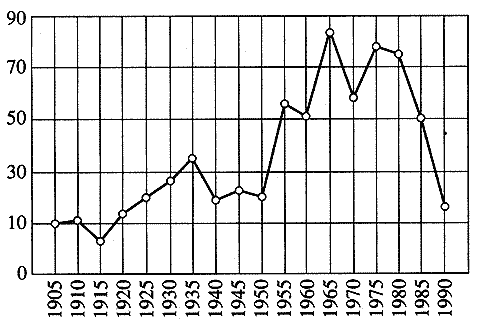 Кстати, следует особо отметить, что подобные прогибы видны и на хронологических наукометрических графиках других дисциплин, построенных ранее другими авторами - на основании анализа количества докторов наук в США, публикаций в физическом реферативном журнале, астрофизических, математических и радиационно-химических исследований, а также научных публикаций в целом [15, с. 224-245], - но ими не обсуждавшихся. Возможно, прогибы свидетельствуют, что спад различных количественных показателей творчества ученых может служить индикатором и предвестником социальных бедствий и, в частности, больших войн.