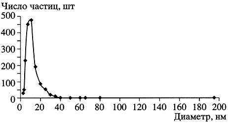 Gd2O3. Средний геометрический диаметр частиц dg 9.4 нм, общее число частиц N = 1583Плавно нарастающее давление при адиабатическом характере процесса прессования вызывает движение частиц со скоростью до 200 м/с при одновременном их разогреве до 300°С [1, 5]. Предварительная дегазация порошка и описанный процесс прессования позволяют получать прессовки с плотностью 0.7-0.85 от теоретической. Для ряда изделий продемонстрирована возможность создания подобных прессов в полуавтоматическом режиме с существенно более высокой производительностью.