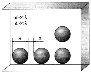 Среды на основе искусственного диэлектрика. Они представляют собой набор металлических элементов, расположенных определенным образом и выполняющих роль молекул обычного диэлектрика. Понятно, что характерные размеры металлических частиц, расположенных на небольших (по сравнению с длиной волны) расстояниях, должны быть много меньше длины волны. Частицы могут иметь различную конфигурацию (сферы, эллипсоиды, диски, стержни, ленты и др.). Под воздействием внешнего поля они поляризуются, свободные электроны смещаются, что приводит к появлению электрического момента так же, как в случае молекул обычного диэлектрика. Показатель преломления искусственного диэлектрика определяется известной формулой n = (e/e0)1/2 = (1 + Na/e0)1/2, где N - число металлических частиц в единице объема, - поляризуемость частицы. Например, в случае металлических частиц в виде сфер радиуса ra = 4pr3e0, т.е. e/e0 = 1 + 4pNr3 = I+3n, где n= 4pNr3/3 - коэффициент заполнения объема металлическими сферами. С учетом взаимного влияния частиц e/e0 = (1+2n)/(1-n). Надо также ввести поправку в выражение для показателя преломления в связи с изменением магнитной проницаемости сферы в переменном поле электромагнитной волны. В случае плоских частиц поправку на магнитную проницаемость вводить не требуется. Например, для круглого диска радиуса r при электрическом векторе, параллельном плоскости диска, a/e0 = 16r3/3, n = (1+16Nr3)1/2/3, а для металлических полосок (лент) шириной a<<l и длиной b (b >>l), при электрическом векторе, параллельном узкой стороне, поляризуемость единицы длины ленты и показатель преломления равны: a/e0 = pa2/4, n = (1+pa2N)1/2/4, где N-количество лент на единицу площади продольного сечения.