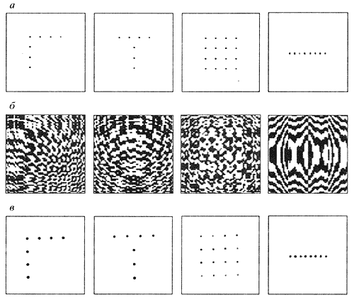 в - эксперимент: многофокусные линзы (l = 650 нм)Подводя итог сказанному, следует особо подчеркнуть важность создания новых материалов для записи и управления лазерным излучением и многофункциональных устройств [3]. Это позволит сделать важный шаг в реализации биологических принципов обработки информации в нейронно-голографических системах с ассоциативной памятью. Понятно, что развитие наноструктурной элементной базы позволит продвинуться в решении ряда фундаментальных проблем биологии и медицины, химии и электроники, механики и фотоники. По оценке американского научного фон-да, затраты на исследования и разработки в области нанотехнологий за последние пять лет увеличились примерно в пять раз и в 2002 г. составили более 2 млрд. долл. В течение 10-15 лет годовой рынок нанотехнологий оценивается, например в области материалов, величиной более 300 млрд. долл., такой же величиной в области электроники, около 200 млрд. долл. в области медицины и такими же впечатляющими суммами в других областях.