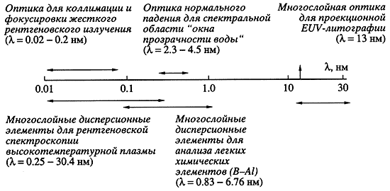 Многослойные зеркала - одно из самых эффективных средств для управления экстремальным ультрафиолетовым и рентгеновским излучениями. Заметим, что диапазон, в которых они используются, очень широк (рис. 1). Если самые большие длины волн этого диапазона поделить на самые короткие, получится 3000 (для сравнения: в видимом диапазоне это отношение около 2). Естественно, в таком широком диапазоне происходит много природных явлений.