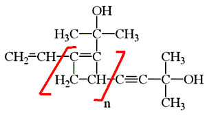 Продукт же этой реакции очень легко полимеризуется, образуя твердую прозрачную массу, состоящую из макромолекул, по-видимому, такого строения: