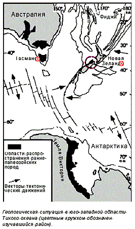 Самые последние данные подкрепляют гипотезу о большой древности Тихого океана.На севере Южного острова Новой Зеландии в блоке (террейне) земной коры Такака хорошо представлены кембрийские ( ~500 млн лет) породы как осадочного, так и вулканогенного происхождения, переслаивающиеся друг с другом. К.Мюнкер (Институт геологии и динамики литосферы в Гёттингене, Германия) (Munker C. // J. Geology. 2000. V.108. P.233-242), изучая Pb-Nd изотопный состав в клинопироксенах из упомянутого комплекса пород (Devil River Volcanics), выявил исключительную радиогенность Pb и ее отсутствие у Nd. Соотношения 207Pb/204Pb характерны для структур субдукционных зон, где происходит погружение океанических плит в глубины Земли. По этим показателям обнаруживается сходство с рядом других районов обрамления Тихого океана, где выходят аналогичные по возрасту породы: Юго-Восточной Австралией, Тасманией, Антарктидой. Все эти районы автор связывает в единую полосу, рассматриваемую в качестве Австрало-Антарктической окраины древнего материка Гондваны, сопряженной с Тихим океаном.