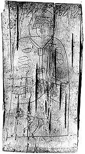 Берестяной оберег с изображением св. Варвары (1029 г.). Находка сразу же породила проблему. Усадьба, где она обнаружена, находится в Новгороде на древней Черницыной улице, получившей свое название от некогда располагавшегося здесь девичьего монастыря св.Варвары. Разумеется, в первой трети XI в. никакой святой обители здесь быть не могло: самые ранние монастыри возникли на Руси лишь во второй половине XI в., а новгородский Варварин впервые упомянут в летописи под 1138 г., т.е. наша находка старше его более чем на 100 лет.