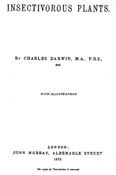 Рисунки Drosera и Dionaea, приводимые в этом сочинении, были сделаны для меня моим сыном Джорджем Дарвином, рисунки же Aldrovanda и нескольких видов Utrucularia - моим сыном Френсисом. Их превосходно воспроизвел в гравюрах на дереве м-р Купер. 188, Стренд.