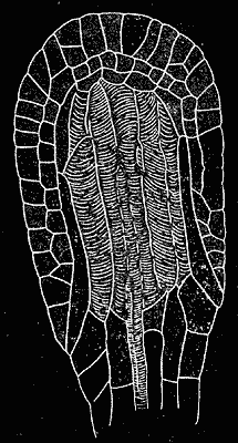 Пурпурная жидкость, или зернистое вещество, наполняющее клеточки железок, до некоторой степени отличается от клеточного содержимого ножек; ибо когда лист помещен в горячую воду или некоторые кислоты, железки становятся совершенно белыми и непрозрачными, между тем как клетки ножек приобретают яркокрасный цвет, за исключением расположенных под самыми железками. Эти последние клетки теряют свой бледнокрасный оттенок, а зеленое вещество, которое они содержат подобно клеткам при основании, приобретает более яркую зеленую окраску. На черешках множество многоклеточных волосков, из которых некоторые, сидящие вблизи пластинки, заканчиваются, по Ничке, небольшим числом округлых клеток: повидимому, это зачаточные железки. Обе поверхности листа, ножки щупалец, особенно нижние стороны внешних щупалец, и черешки усеяны очень мелкими сосочками (волосками, или трихомами), имеющими коническое основание и несущими на верхушке две, иногда три или даже четыре округленные клетки, которые содержат много протоплазмы. Эти сосочки обыкновенно бесцветны, но иногда содержат немного пурпурной жидкости. Степень их развития бывает различна, и они постепенно переходят, как утверждает Ничке * и как я сам не раз наблюдал, в длинные многоклеточные волоски. Последние, равно как и сосочки, вероятно, являются зачатками первоначально существовавших щупалец.