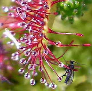Я не знаю, садятся ли насекомые на листья вследствие простой случайности, как бы для отдыха, или же их привлекает запах выделения. По числу насекомых, улавливаемых английским видом Drosera, и по моим наблюдениям над некоторыми экзотическими видами, содержавшимися у меня в теплице, я предполагаю, что запах привлекателен. В последнем случае листья можно сравнить с ловушкой, в которую положена приманка; в первом случае - с капканом, поставленным на тропе, где ходит зверь, но без приманки.