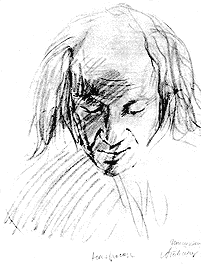 И я сегодня, тоже повинуясь рефлексу профессии, наблюдал Дейнеку *, когда он выступал. Если бы вы видели его жесты, вы бы сказали, что он жестикулирует, как формалист. У него одно плечо немножко приподнято, второе опущено, он почесывает голову. Когда он разговаривал, он немножко пританцовывал. Проявления нашей человеческой природы безгранично многогранны, и не думайте, что схема построения лица по принципу двух глаз по бокам и носа по средине - единственный секрет портрета.
