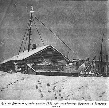 Выгрузка произошла молниеносно - пилоты даже не выключали моторы, - но, наскоро осмотрев станцию, Кренкель и Мехреньгин сделали заключение, что жить на ней можно. При более близком знакомстве с нею оказалось, что дом цел, но очень запущен; тамбур, кухня и печная труба забиты снегом и льдом; стены, пол, потолок насквозь проморожены, температура воздуха в доме та же, что и снаружи, - около сорока градусов мороза, но в доме холод ощущается сильней. Пришлось затратить немало сил, чтобы все это расчистить, найти и раскопать из-под снега уголь, как следует протопить и просушить дом. Но еще очень долго в нем держались противная сырость и тяжелый воздух. Через три дня, 25 марта, Кренкель передал в эфир первую метеорологическую сводку. После долгого перерыва остров Домашний снова появился на синоптических картах Москвы, Диксона и других прогностических центров страны. Это было как нельзя более своевременно. 29 марта летчики М. В. Водопьянов и В. М. Махоткин стартовали на самолетах "Н-127" и "Н-128" из Москвы в первый полет на Землю Франца-Иосифа. 20-22 июля В. П. Чкалов совершил на самолете "АНТ-25" знаменитый беспосадочный перелет по маршруту: Москва - Земля Франца-Иосифа - Северная Земля - устье Лены - Петропавловск-на-Камчатке - остров Удд (с того времени - остров Чкалова). Одним из важных звеньев в метеорологическом обеспечении полетов была работа обеих североземельских станций. 7 апреля "Правда" поместила на своих страницах содержательную и очень выразительную корреспонденцию Кренкеля о жизни и работе на острове Домашнем. В типичном для него стиле Эрнст Теодорович писал: "Уже две недели мы с механиком Мехреньгиным живем на новом месте. Весь день вертимся, как белки в колесе. Четырьмя незыблемыми вехами являются метеорологические наблюдения, которые мы проводим через каждые 6 часов. В перерывах работает радиостанция. Надо еще успеть приготовить обед, испечь хлеб, постирать белье, раздобыть уголь, смерзшийся в крепкий пласт. Продолжаем раскапывать огромные сугробы снега вокруг дома. Дома у нас чисто, светло, уютно. Мы регулярно бреемся, следим за собой. Койки наши заправлены чистыми простынями. В качестве наволочек используем оставшееся на зимовье белье бывшего начальника полярной станции в 1934 году Нины Демме. Вытащили и установили в жилом помещении двигатель. Зарядили аккумуляторы. Мощность радиостанции увеличилась, а, кроме того, мы избавились от ручной динамомашины; теперь она переведена в "аварийный запас". Никак не можем найти керосин. Но это нас мало смущает, потому что с 15 апреля солнце заходить уже не будет. Для метеорологических сводок приходится определять форму, вид и высоту облаков. Без привычки это трудно делать. Изволь рыться в толстом атласе, подыскивать подходящие картинки, когда облака определенно не желают согласовываться с атласом! Поэтому моя любимая погода - метель, когда форма и высота облаков не поддаются определению. В один из ближайших хороших дней мы отправимся в небольшую экскурсию по острову. На очереди - установление радиотелефонной связи с островом Уединения" постараемся также исправить ветряной двигатель, чтобы заряжать с его помощью аккумуляторы. Питаемся отлично, но отчаянно надоел шоколад. К сведению москвичей: меняем кило шоколада на кило картошки или огурцов... при условии доставки их на острова Сергея Каменева средств