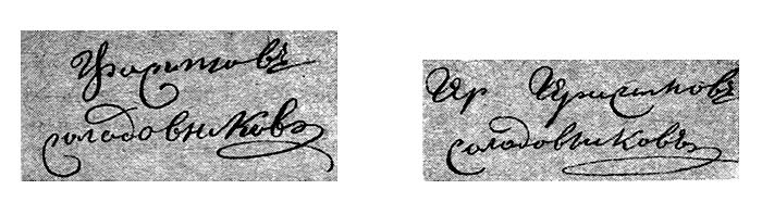 Из материалов графологической экспертизы, проведенной по поручению Московского окружного суда.