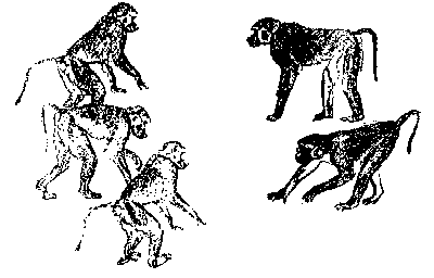 Зоологи решили обратить внимание на не столь близкие к человеку по родству виды, но зато живущие в условиях, похожих на те, в которых жили наши предки в саванне Восточной Африки. В саванне наземным обезьянам без сложной организации не выжить. Каждая из них по отдельности вооружена ненадежно для защиты от леопарда, льва и гиеновых собак, а бегает она медленнее их. Низкая плодовитость обезьян не позволяет им "платить" хищникам сколько-нибудь большую дань. Наземные собакоголовые обезьяны - павианы, бабуины, гамадрилы - живут в саванне. В сходных с предками человека условиях они могли выработать сходные приспособления и поведение.